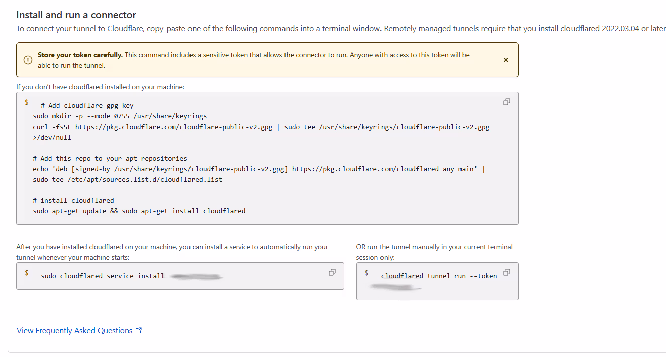 sudo cloudflared service install [YOUR_UNIQUE_TOKEN_HERE]
