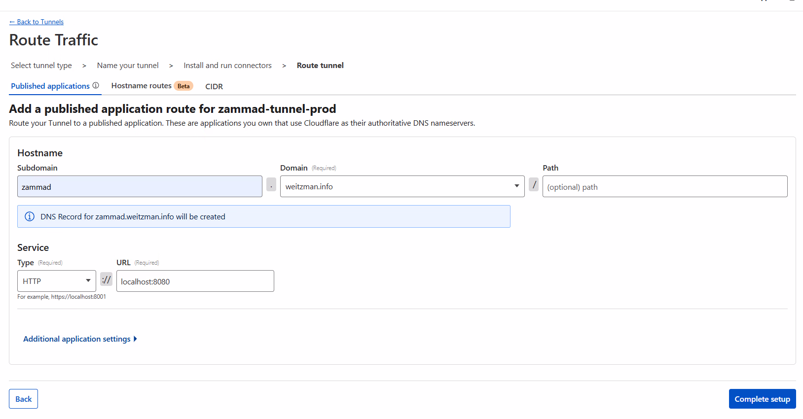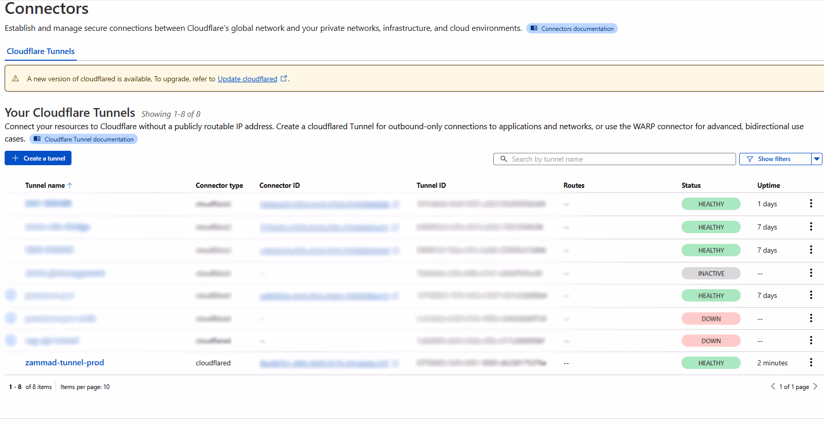 Click Create a Tunnel, select Cloudflared, and give it a name like prod-server-connector.